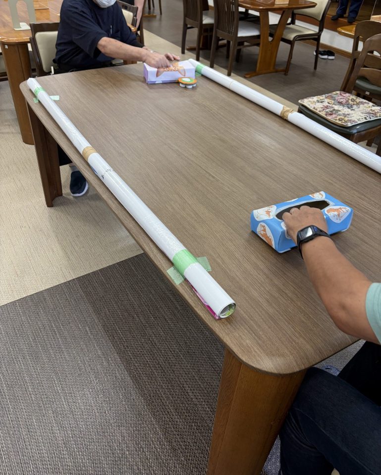 先日の介護予防教室では、「テーブルホッケー」を行いました。
